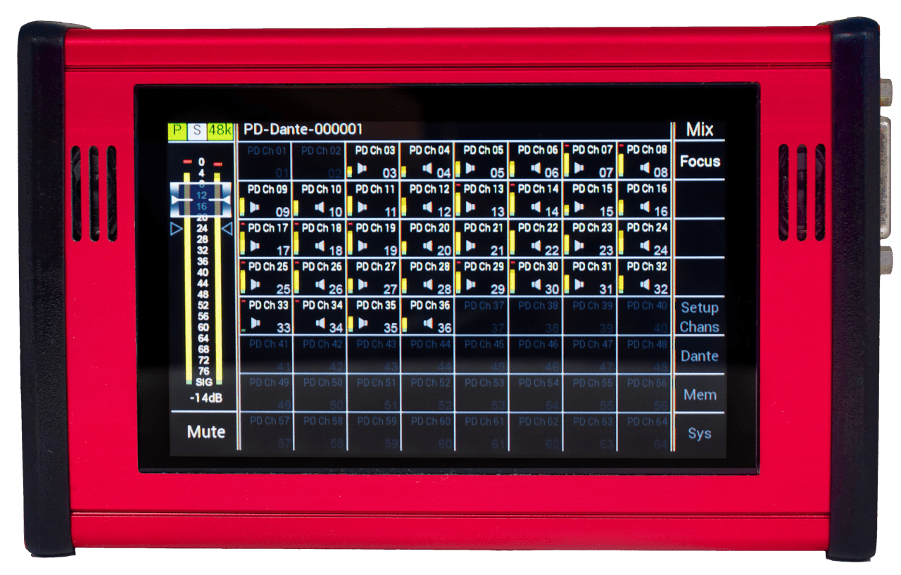 Monitor di rete Dante a 64 canali per l’uso con telecomando – dotato di PoE, porte ridondanti, compatibilità AES67.