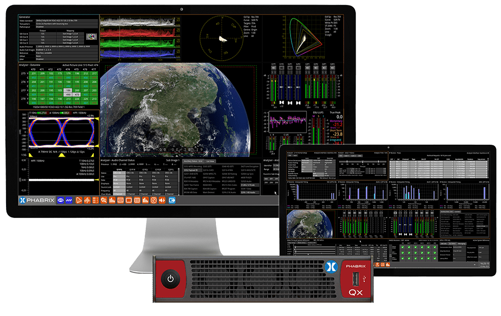 Il Qx riunisce tutti gli strumenti avanzati necessari per la transizione alla prossima generazione di formati video. Progettato per ambienti SD/HD/3G/6G/12-SDI e IP ST 2110/2022-7/2022-6, il set di strumenti include strumenti per la diagnosi rapida dei guasti, il monitoraggio della conformità e lo sviluppo del prodotto. Qx offre SDI come standard. Gli strumenti principali di analisi dei media per gli ambienti degli operatori di trasmissione includono visualizzazione di immagini, analizzatore di forme d’onda, vettorscopio, misurazione audio a 32 canali e stato ANC.
