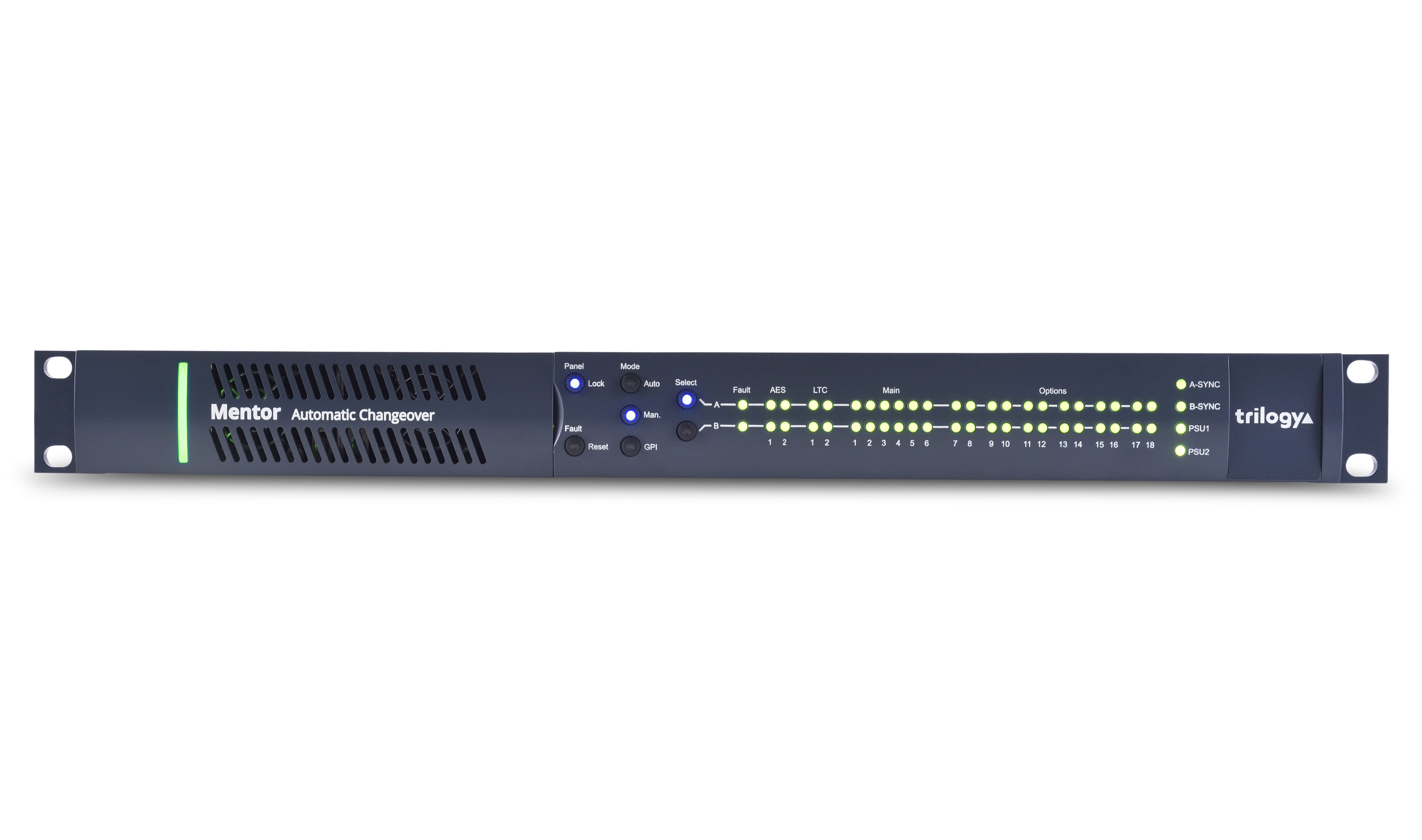 Trilogy, una società Clear-Com®, presenterà il nuovo change over Mentor CX all’IBC2018. Mentor CX commuta automaticamente segnali audio e video progettato per essere utilizzato con i generatori di impulsi di segnale Mentor RG main e di backup.