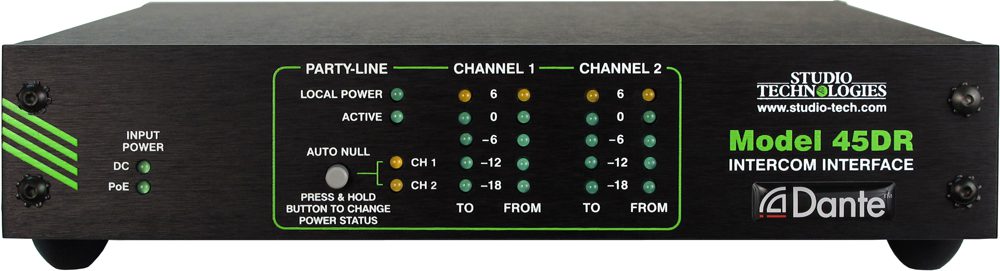 L’interfaccia interfono modello 45DR di Studio Technologies è ideale per collegare i tradizionali sistemi di linea analogica a 2 fili (PL) da RTS®; l’interfaccia interfono modello 45DC è ideale per collegare i tradizionali sistemi di linea analogica a 2 fili (PL) di Clear-Com®.