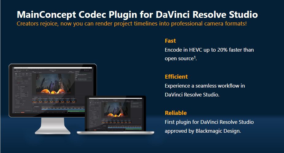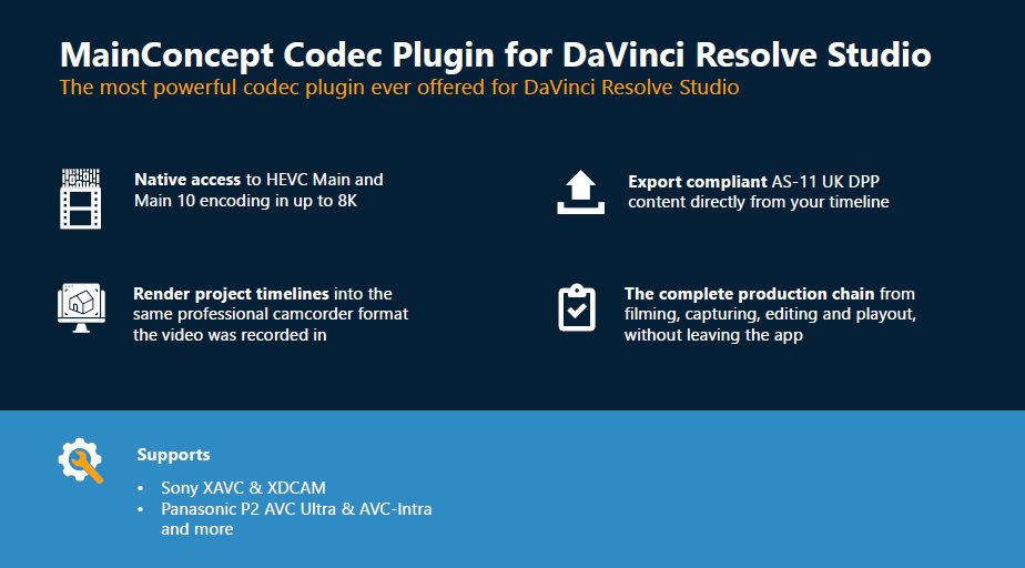 Con MainConcept Codec Plugin per DaVinci Resolve Studio, è possibile: