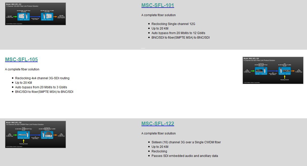 Disponibile con 1, 4, 8 o 16 canali su più cavi in fibra monomodale o un singolo cavo in fibra CWDM. I sistemi a 4, 8 o 16 canali sono offerti con e senza commutazione del router incorporata.